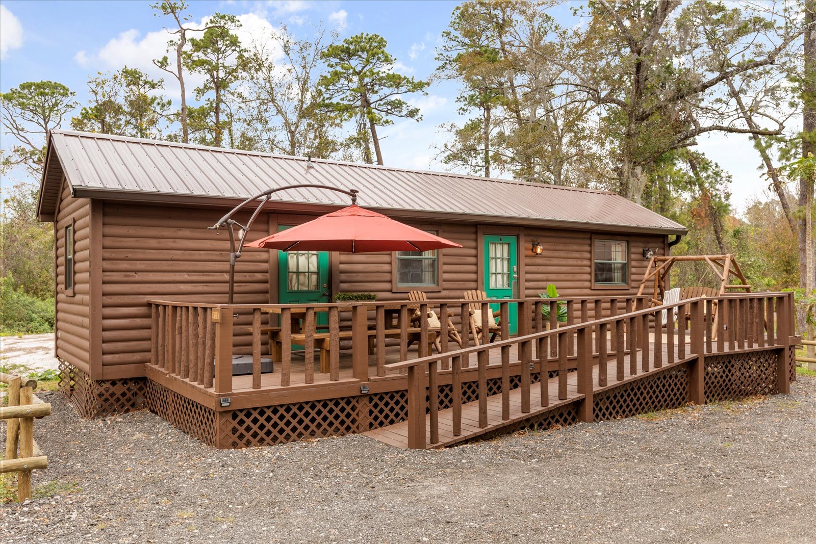 Discover a one-of-a-kind getaway at JR Cabins, a peaceful gated retreat featuring three vintage cabins originally used by Disney. Nestled in nature yet only 20 minutes from the theme parks, this unique property offers the perfect balance of relaxation and adventure. Guests can enjoy an outdoor pavilion with picnic tables and yard games, a fire pit, a private pool, and plenty of space to unwind. Each cabin is identical and can be booked separately—perfect for couples, small families, or groups traveling together. Guests who need multiple cabins must book each one individually – our team is happy to help with any questions.