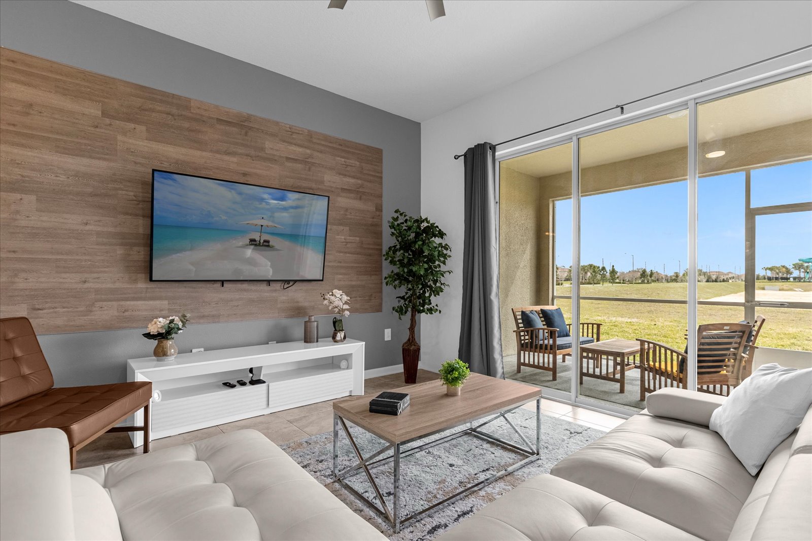 Welcome to this beautifully styled and centrally located Champions Gate home, just minutes from Disney, top golf courses, Northeast Regional Park, Target, Walmart, outlet malls, and countless dining options. This spacious and modern 2-bedroom, 2-bathroom home features brand-new furnishings, an open-concept layout, and a private patio with a peaceful view. Perfect for families or small groups, the home offers comfort, convenience, and access to world-class resort amenities through The Oasis Club and the community water park.