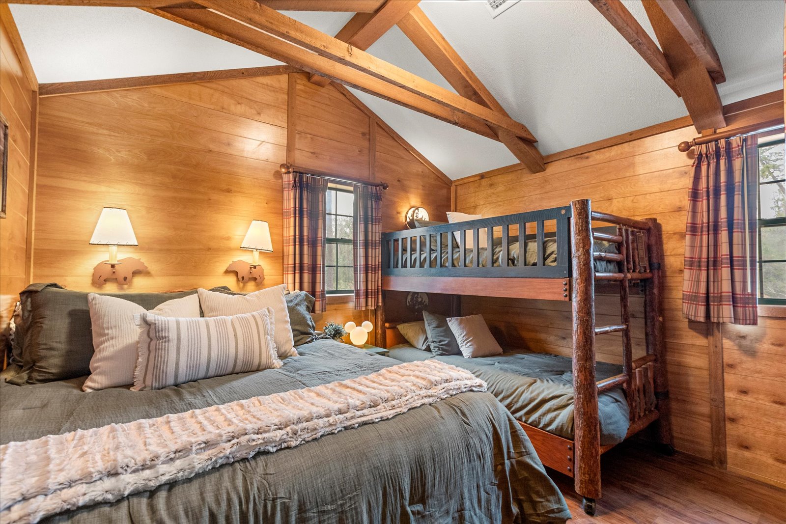 Discover a one-of-a-kind getaway at JR Cabins, a peaceful gated retreat featuring three vintage cabins originally used by Disney. Nestled in nature yet only 20 minutes from the theme parks, this unique property offers the perfect balance of relaxation and adventure. Guests can enjoy an outdoor pavilion with picnic tables and yard games, a fire pit, a private pool, and plenty of space to unwind. Each cabin is identical and can be booked separately—perfect for couples, small families, or groups traveling together. Guests who need multiple cabins must book each one individually – our team is happy to help with any questions.